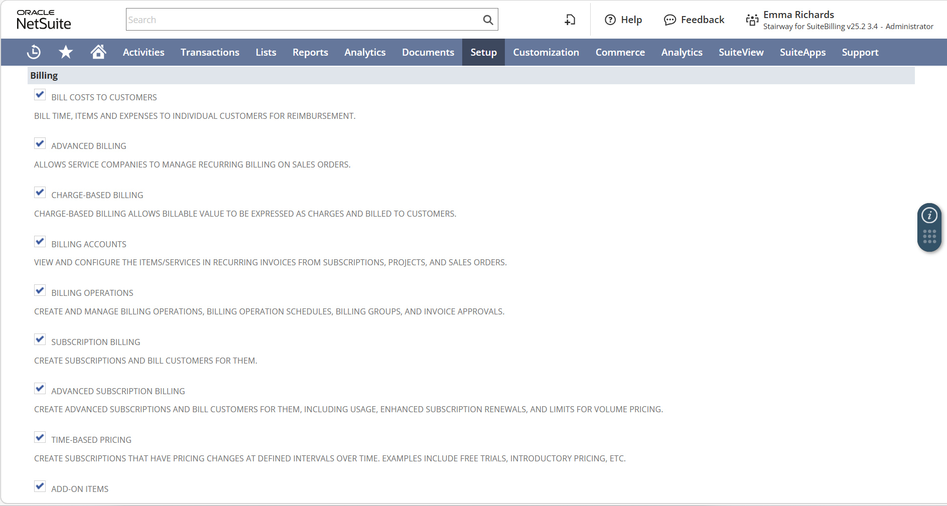Once SuiteBilling has been confirmed in your Bill of Materials, a user can enable it through: