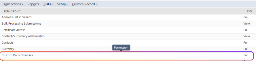 By updating the bundles, it automatically updates the Custom role SuiteProjects Pro Integration Administrator. If you are using your own custom role for the SuiteProjects Pro integration instead of the “SuiteProjects Pro Integration Administrator” role created by the SuiteProjects Pro SRP Integration (Bundle ID 369637) bundle, make sure that this custom role includes the following permissions and permission levels in the Setup secondary subtab: