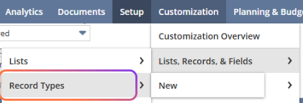 1. Go to Customization > Lists, Records and Fields > Record Types.