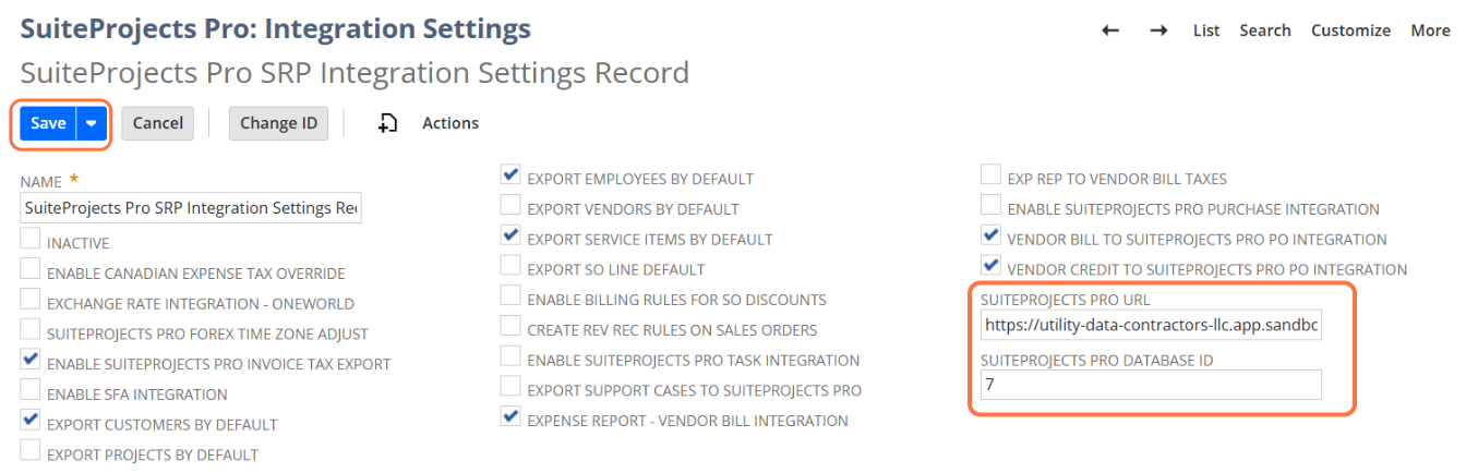 Update the preferences for the NetSuite SuiteProjects Pro integration Custom Record.